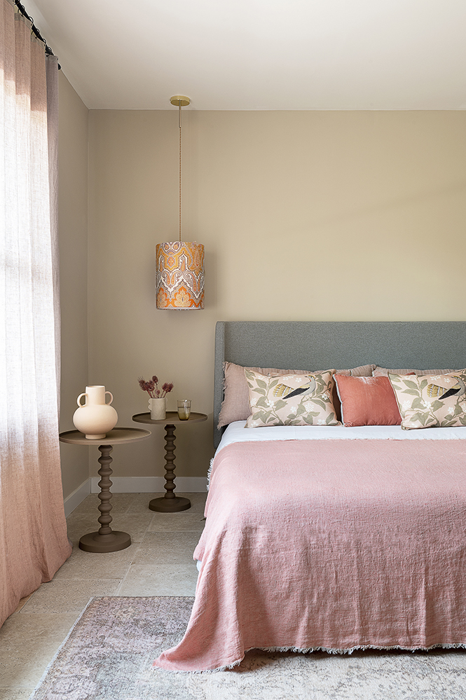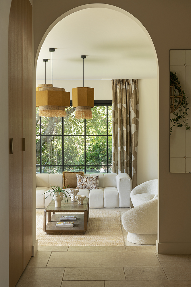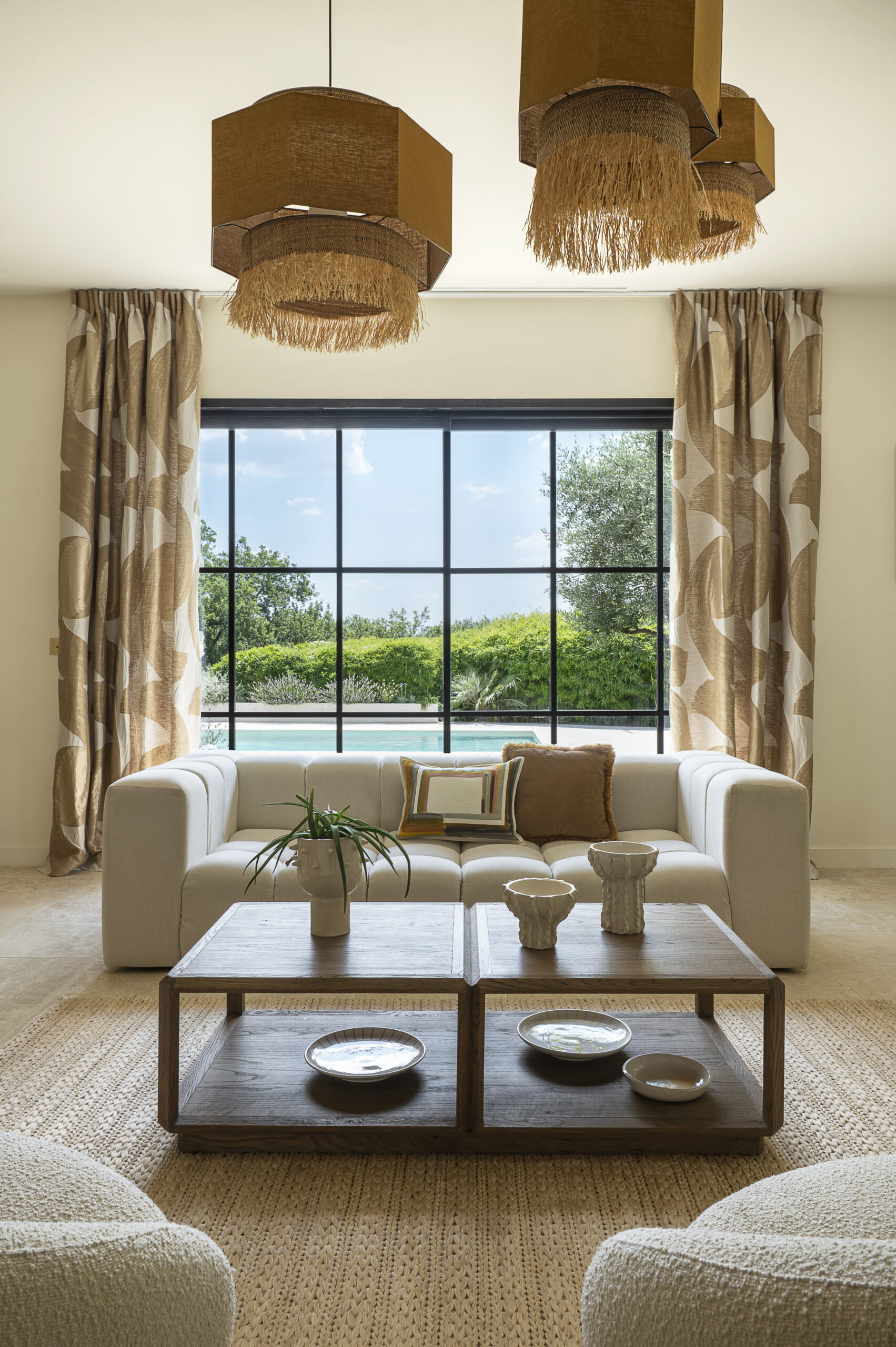 This 80s villa was completely transformed by our team. The roofs and overhangs, an extension, the terraces: everything has been redesigned to modernise and extend this villa, which enjoys magnificent views of the Sainte-Victoire mountain range. Inside, a Mediterranean style has been combined with the clean lines of traditional Greek houses. Noble materials such as travertine, oak, brass and Moroccan zelliges have been used for the flooring and fittings. The arched windows add a touch of charm to the house, and the different wallpapers we have chosen add a sense of rhythm. A timeless interior design for a villa where well-being and comfort reign supreme.