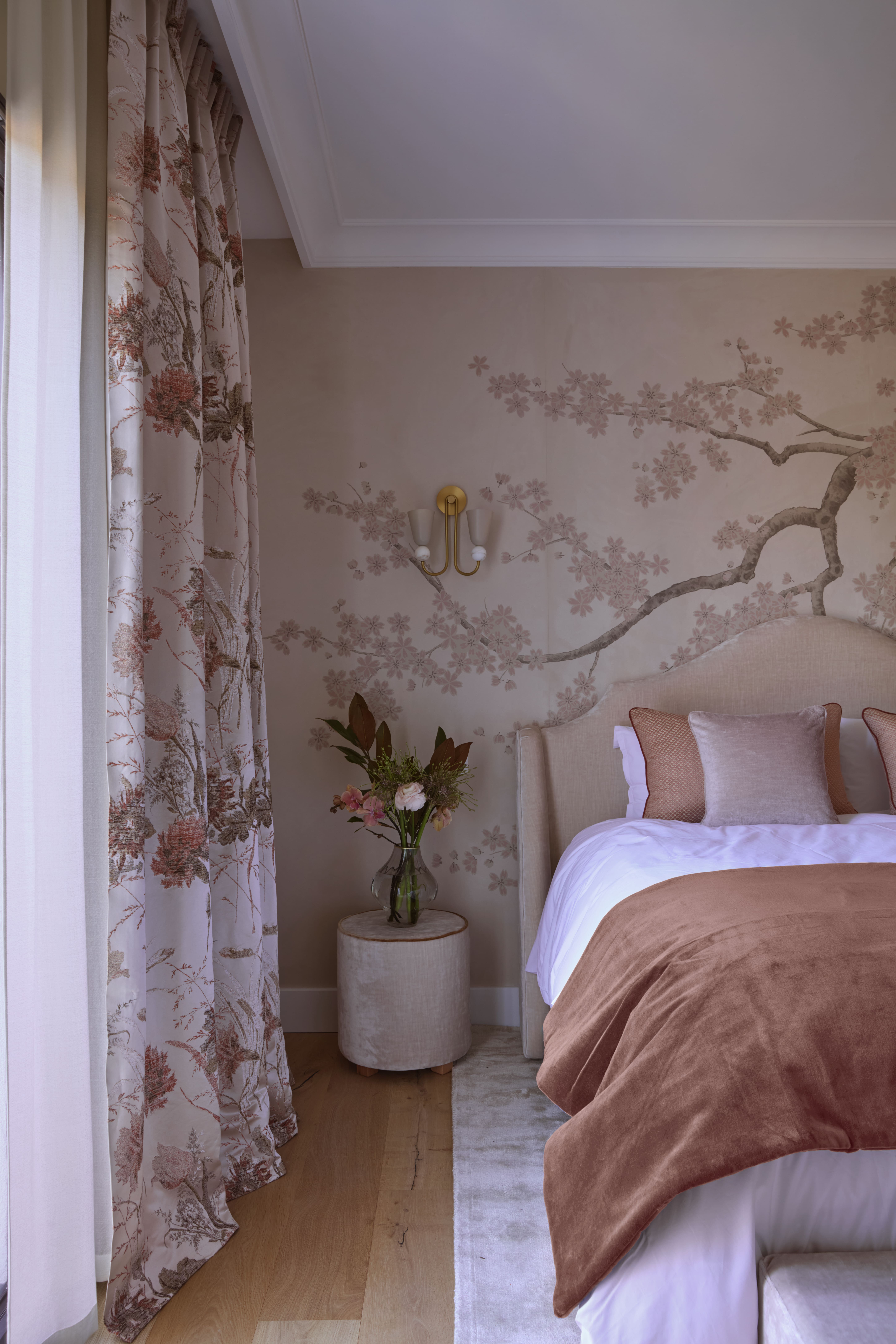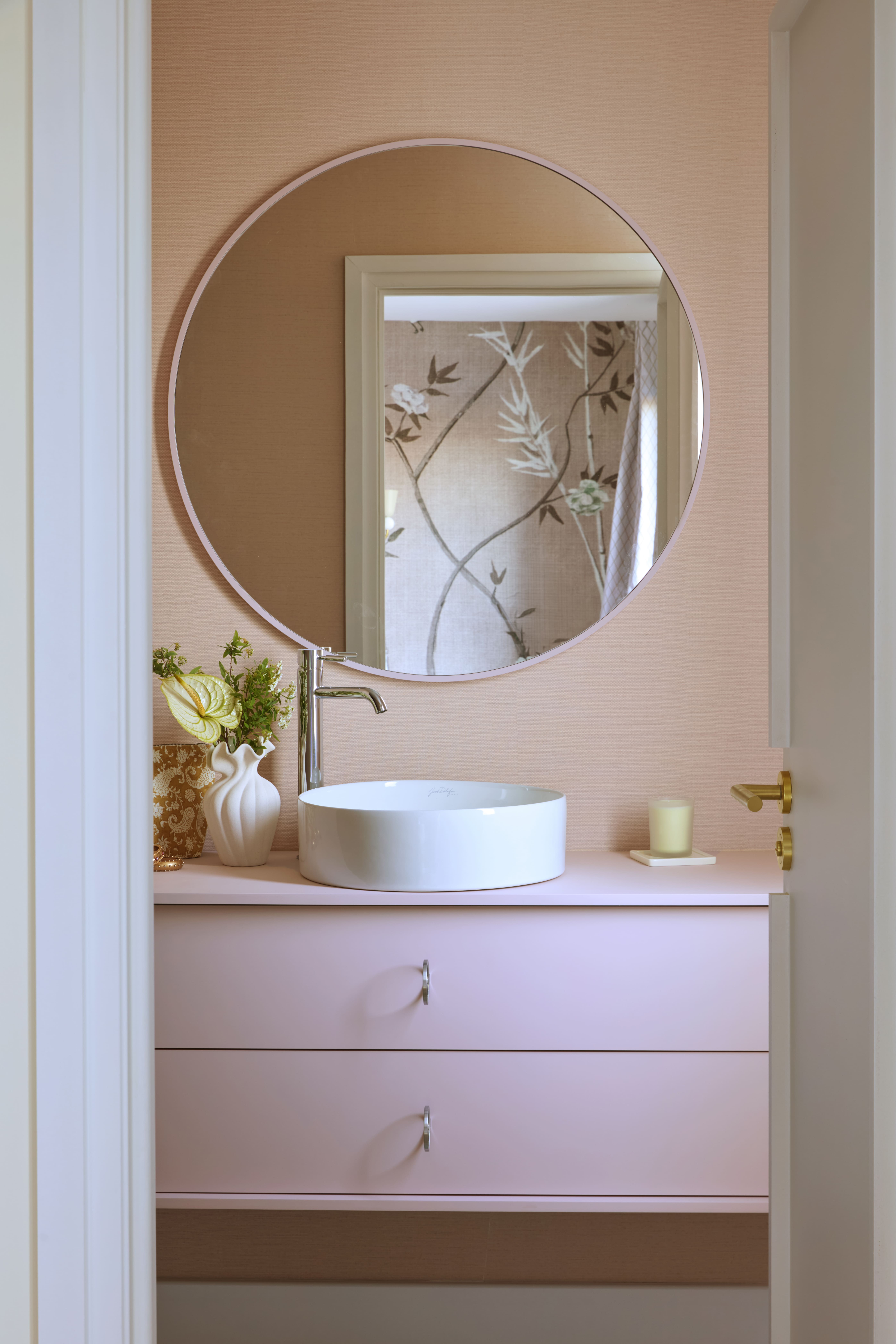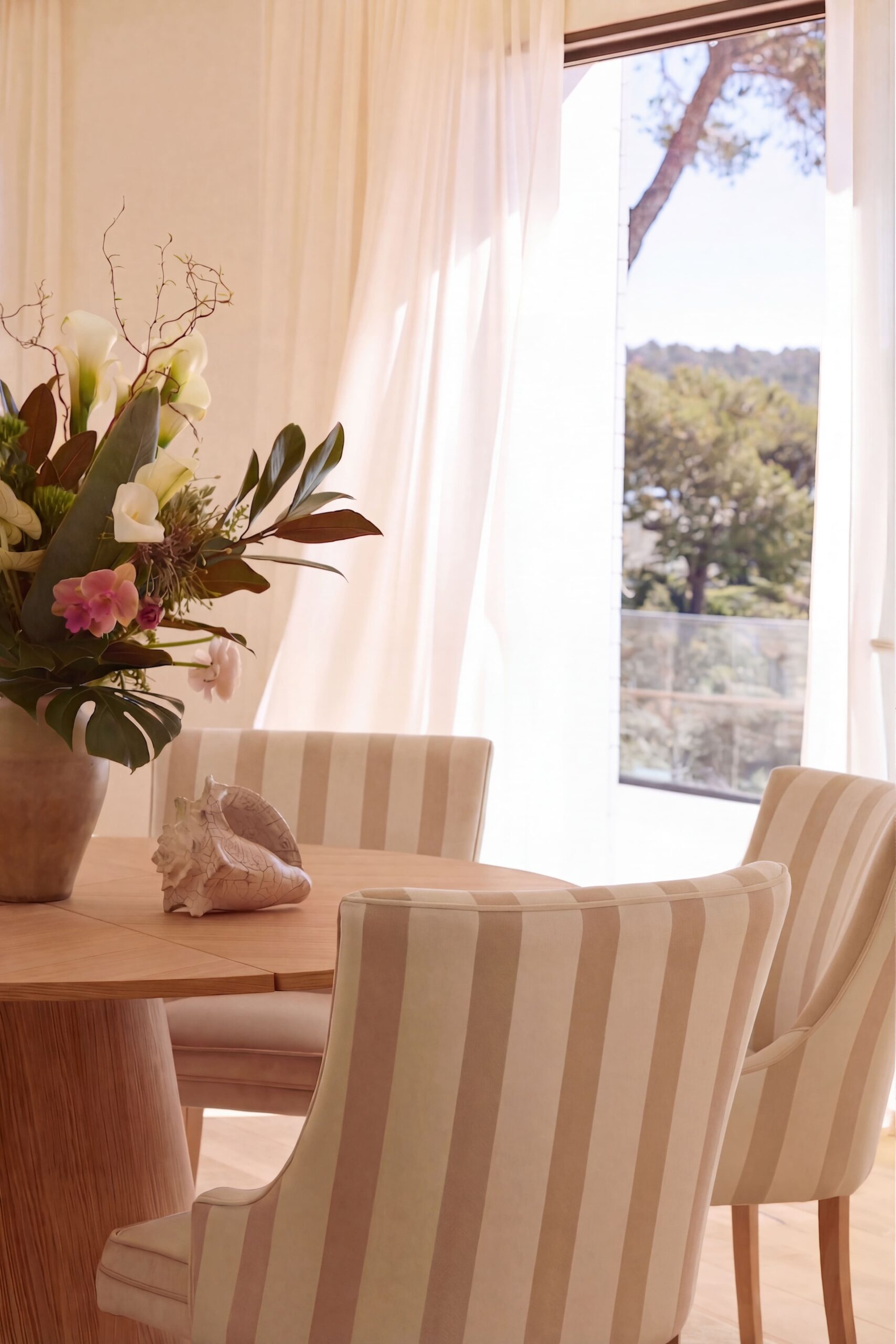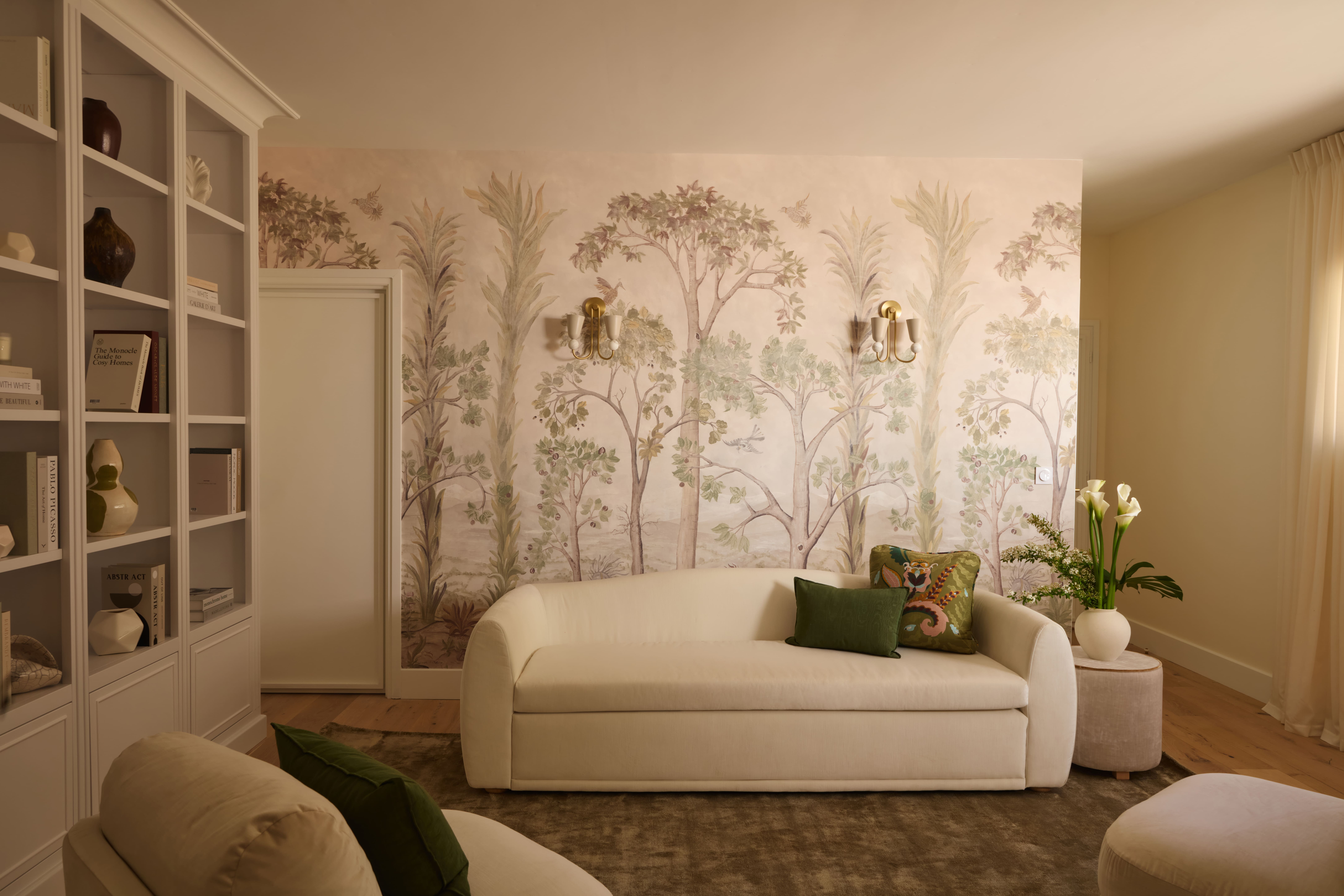 Pour cette villa des années 2020, nous avons mené des travaux de rénovation partielle. Nos clients Américains nous ont laissé une carte blanche, avec pour seul brief: des papiers peints floraux et des couleurs claires pour initier une ambiance romantique.